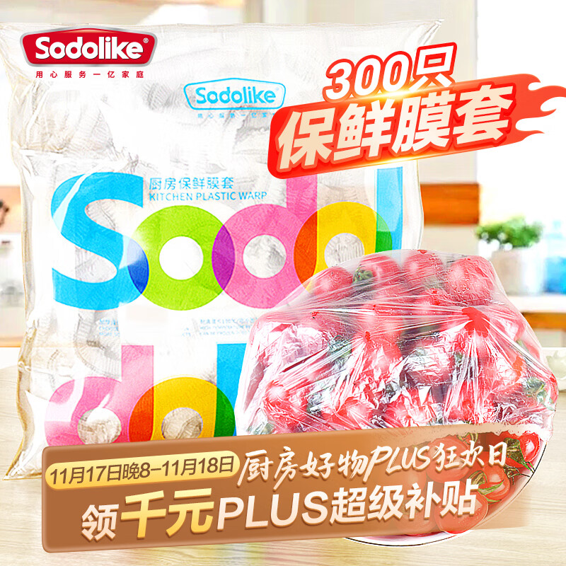 Sodolike食品级保鲜罩 300只一次性束口保鲜膜套加厚厨房自封口强韧不易破