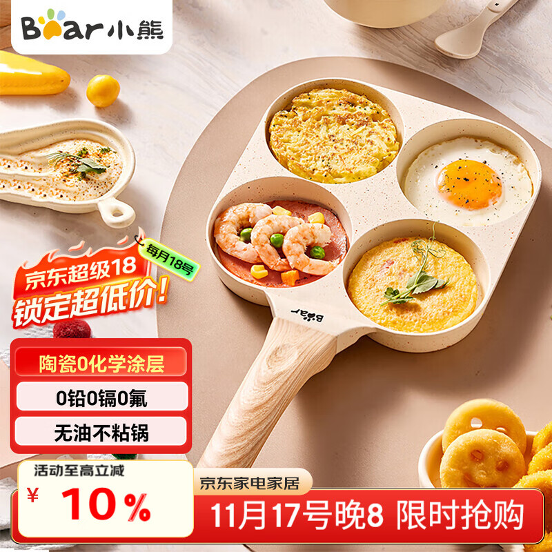小熊(Bear)0氟早餐锅 陶瓷煎锅 平底锅不粘锅 煎蛋神器 明火专用 JG019-P01