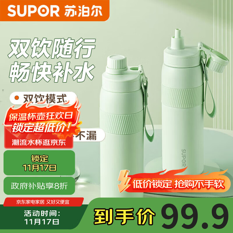 苏泊尔(SUPOR)保温杯316L不锈钢水杯男女中小学生便携保温车载双饮杯