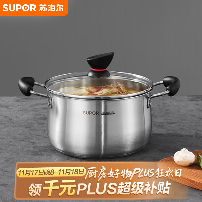 苏泊尔SUPOR小红圈304不锈钢汤锅22cm复底加厚炖锅电磁炉通用ST22Z1