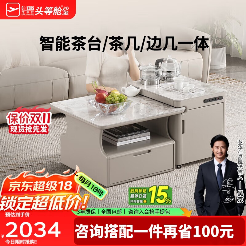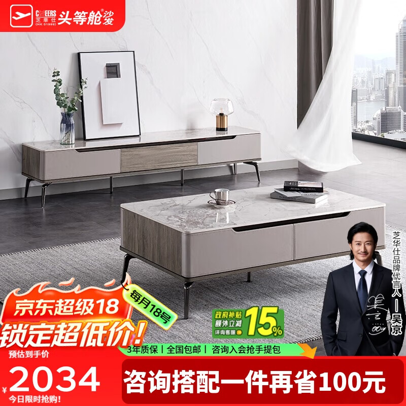 芝华仕(CHEERS)现代简约岩板组合茶几客厅茶台可移动茶桌芝华士CJ170