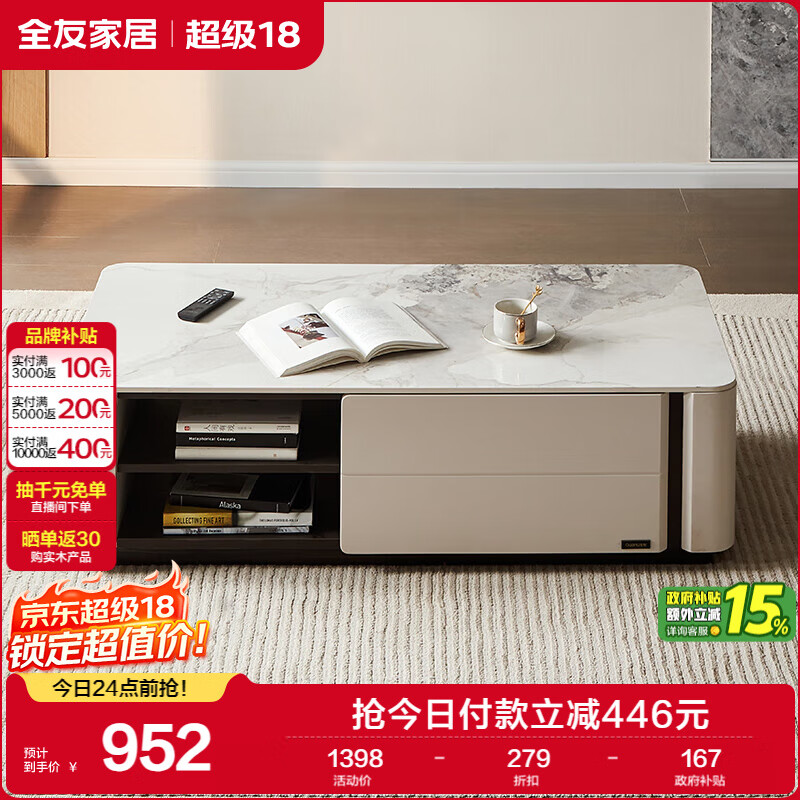 全友家居 岩板茶几意式轻奢客厅家用小户型边桌收纳储物柜子置物桌子