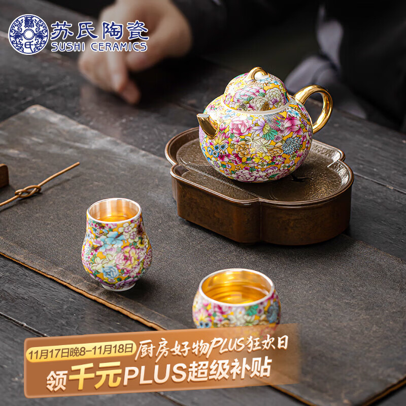 苏氏陶瓷(SUSHI CERAMICS)鎏银万花福禄非遗大师郑文强作品功夫茶具礼盒伴手礼套组