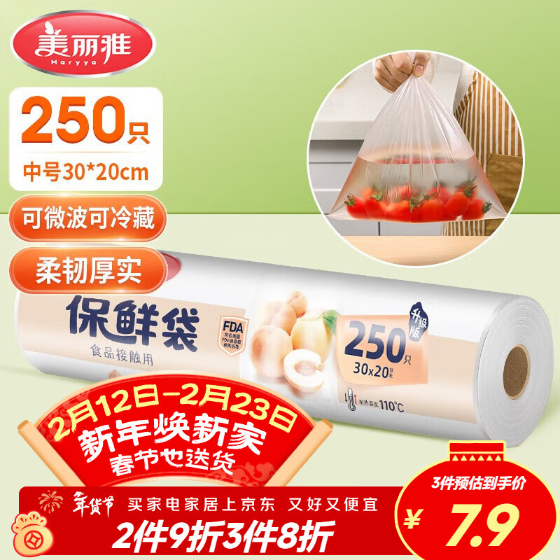 美丽雅保鲜袋食品级中号250只厨房冰箱食品保鲜袋冰箱专用