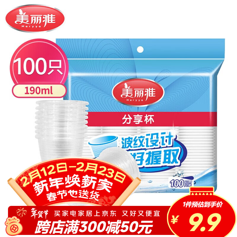 美丽雅 一次性杯子塑料杯190ml*100只加厚透明果汁饮料水杯小号家用