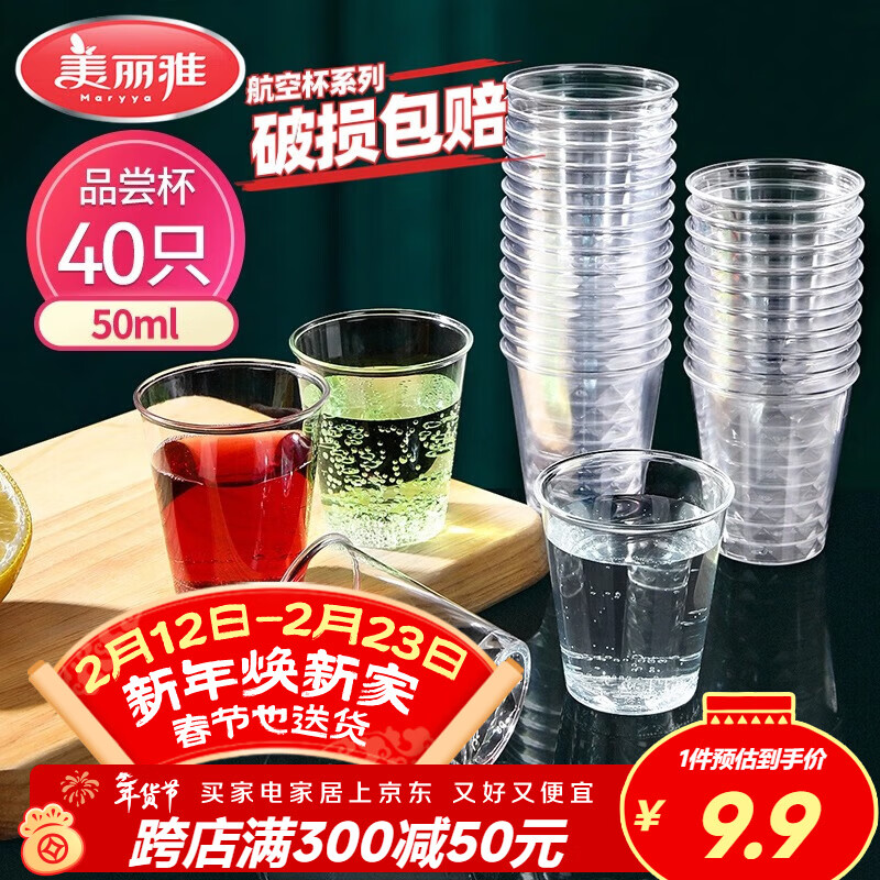 美丽雅航空杯小号50ml*40只 一次性品尝试饮试吃白酒茶杯 加厚塑料杯