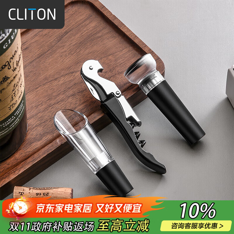 CLITON红酒开瓶器不锈钢海马刀 手动开酒器酒起子抽真空保鲜瓶塞倒酒器