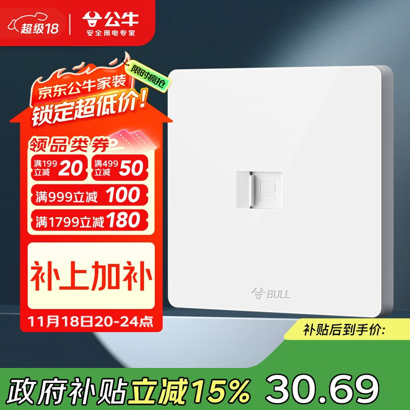 公牛(BULL)开关插座 一位电脑六类插座G12T102B象牙白暗装