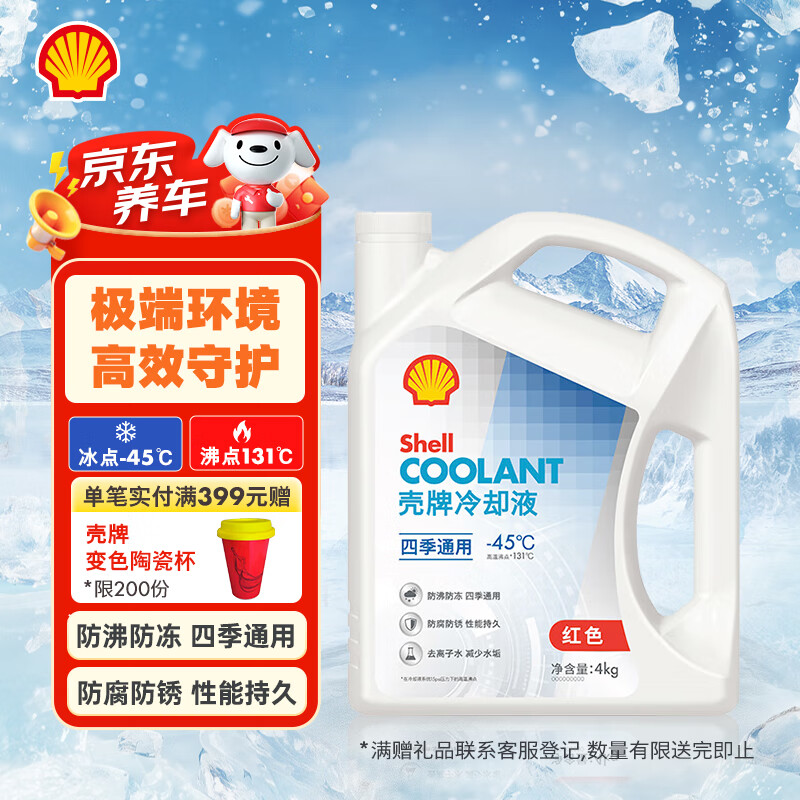 壳牌(Shell)长效防冻液 汽车冷却液 四季通用 -45℃ 4kg (红色) 养车保养