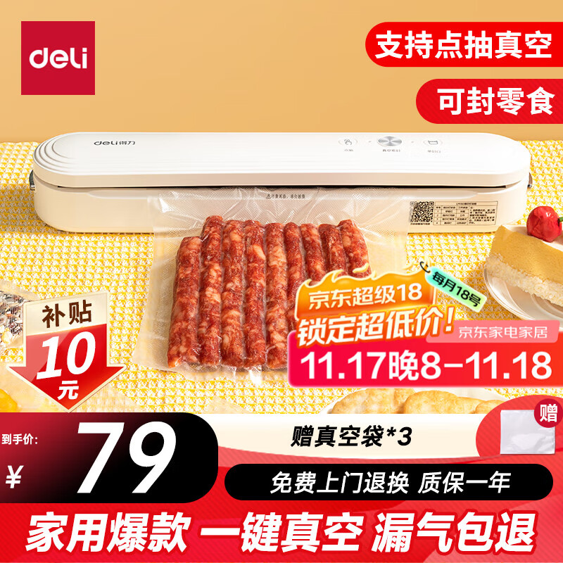 得力家用腊肉抽真空封口机小型真空包装机食品全自动真空机干湿两用商用真空保鲜打包机小巧便携 LM120