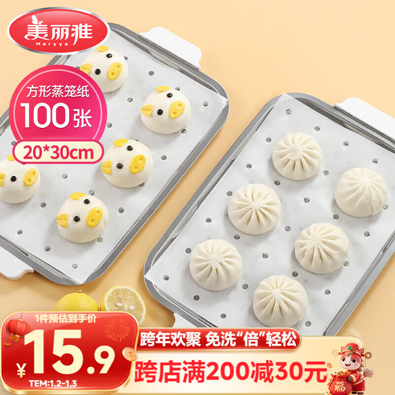 美丽雅蒸笼纸食品级100张 一次性长方形包子馒头垫纸 蒸屉蒸锅专用纸