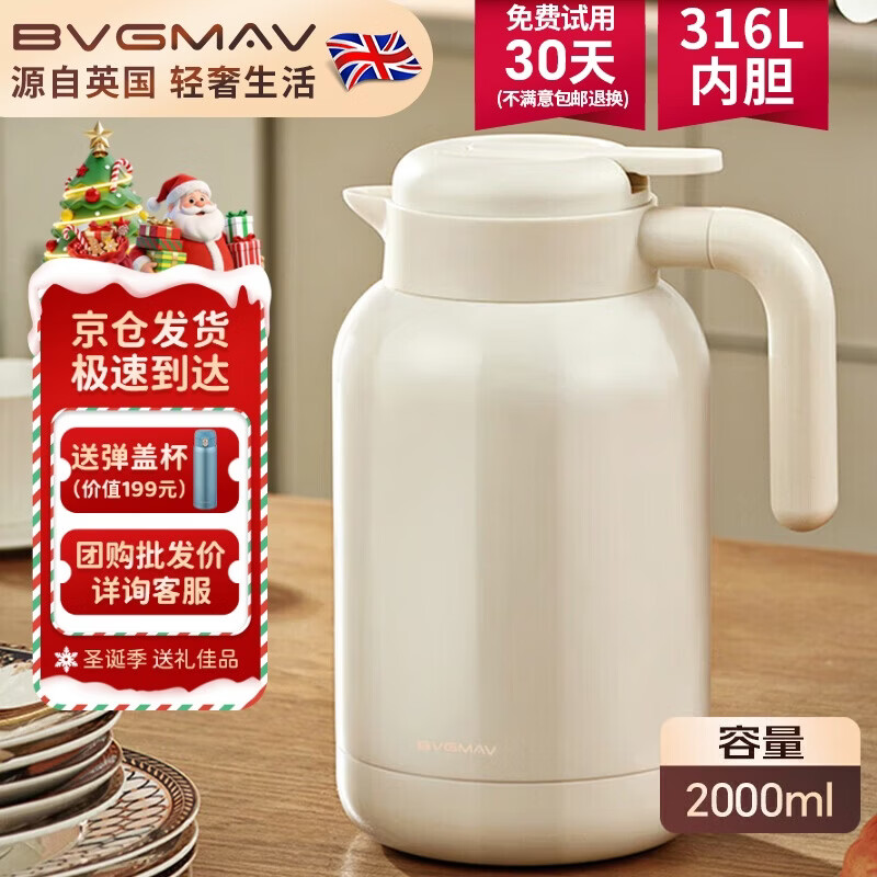 宝威玛(BVGMAV)保温壶家用办公室316L不锈钢保温水壶大容量热水瓶居家高档礼物2L
