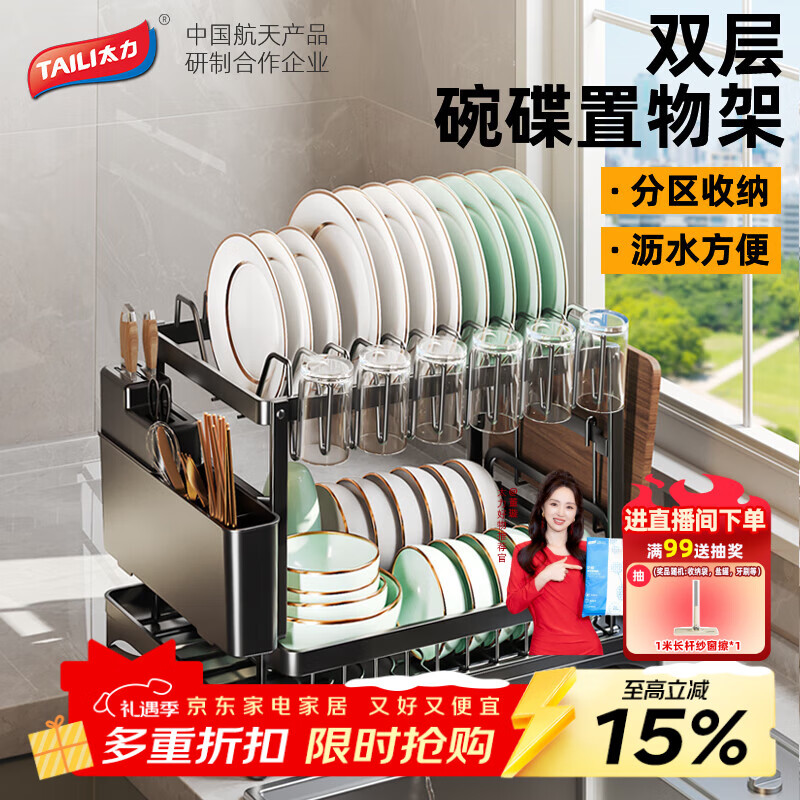 太力厨房置物架 碗碟架碗盘置物架沥水碗架 台面收纳架砧板架