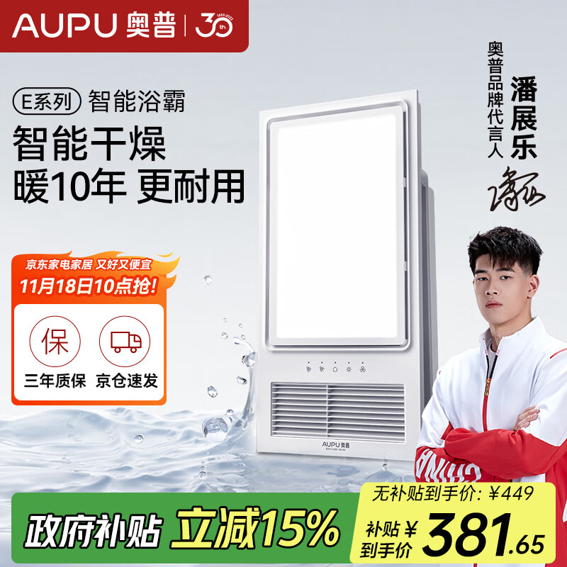 奥普(AUPU)浴霸E371-Y集成吊顶大功率风暖浴霸强弱风暖升级无线遥控