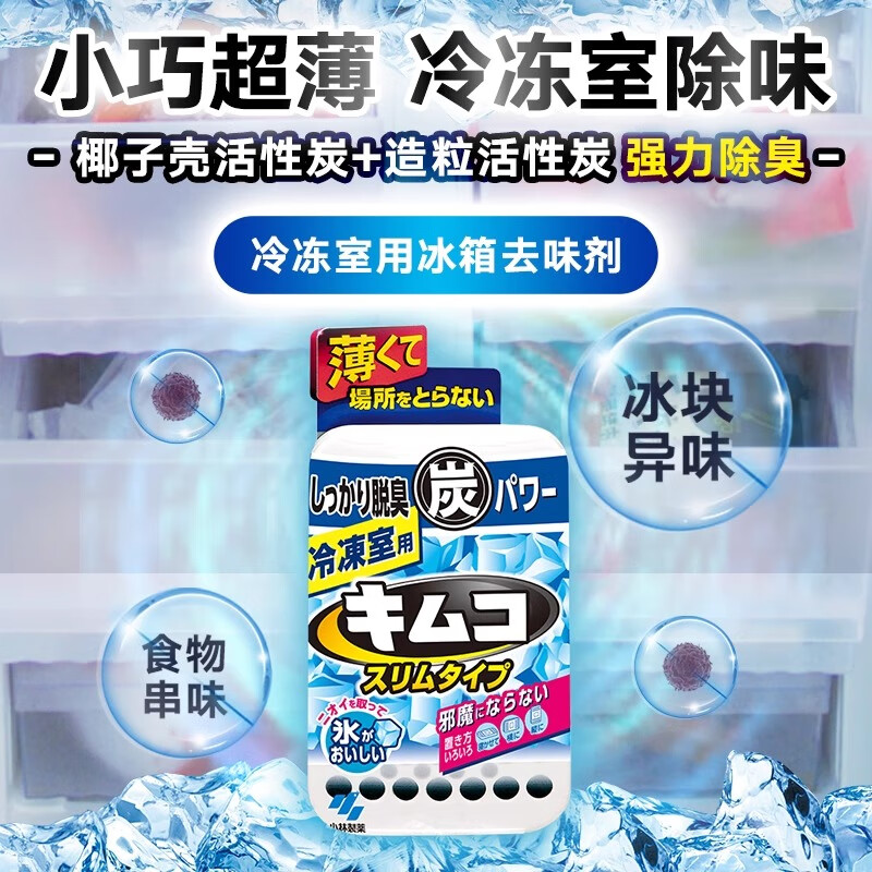 小林制药(KOBAYASHI)进口冰箱除味剂活性炭去异味消臭剂净化冷冻室用超薄型26g