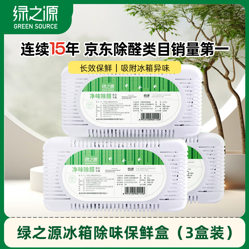 绿之源冰箱除味剂3盒装 活性炭去除异味器回南天竹炭包除湿剂