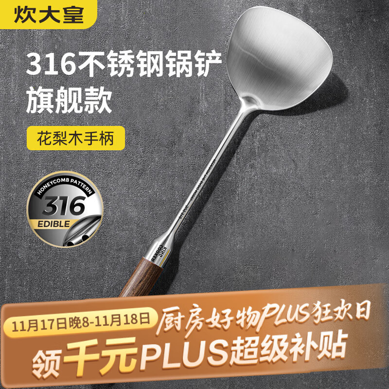 炊大皇 316不锈钢锅铲花梨木手柄家用加厚铁锅不锈钢锅不粘锅炒菜铲子