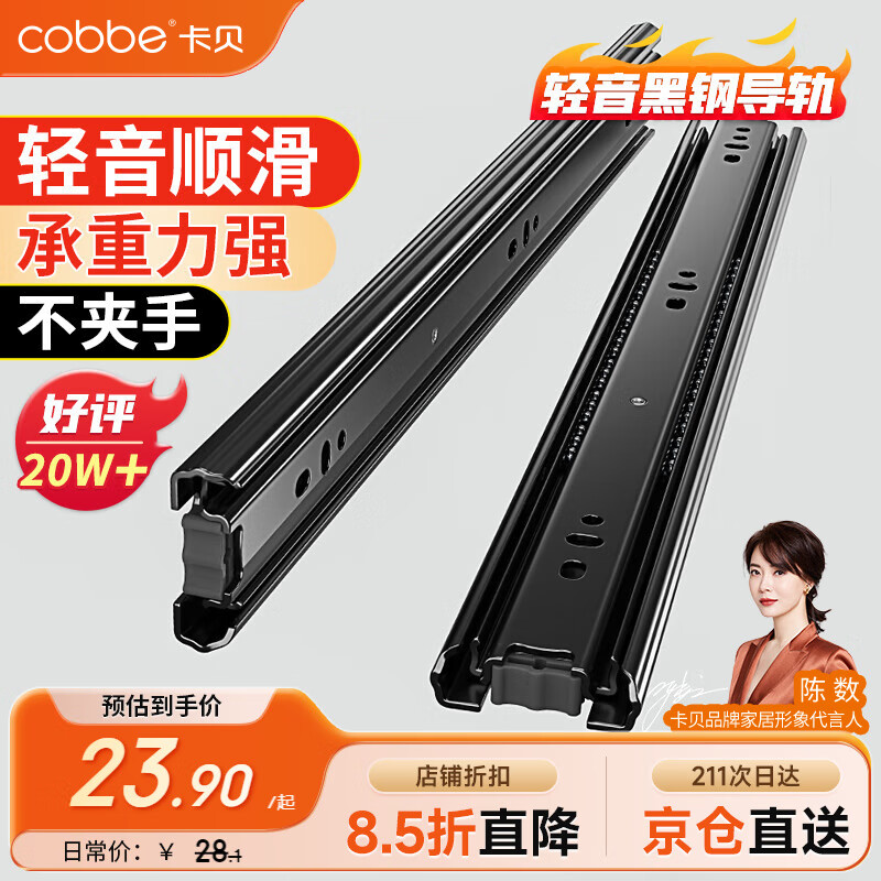 卡贝抽屉轨道滑轨滑道三节抽屉拉轨导轨衣橱柜五金配件14寸35cm一副装