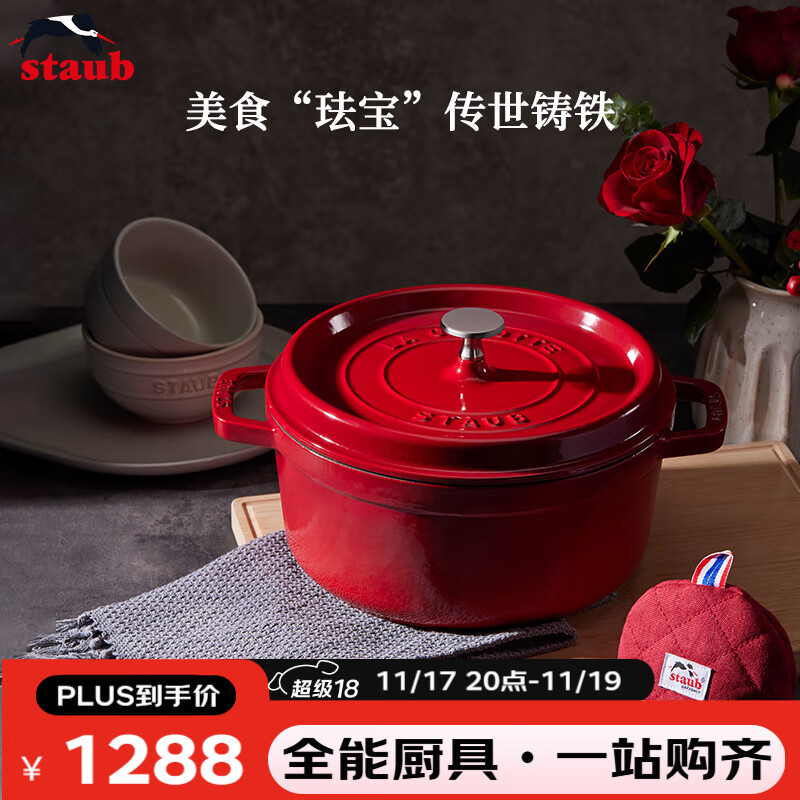 珐宝(staub)厨房好物法国进口珐琅铸铁锅樱桃红22cm双耳煲汤锅 40509-825