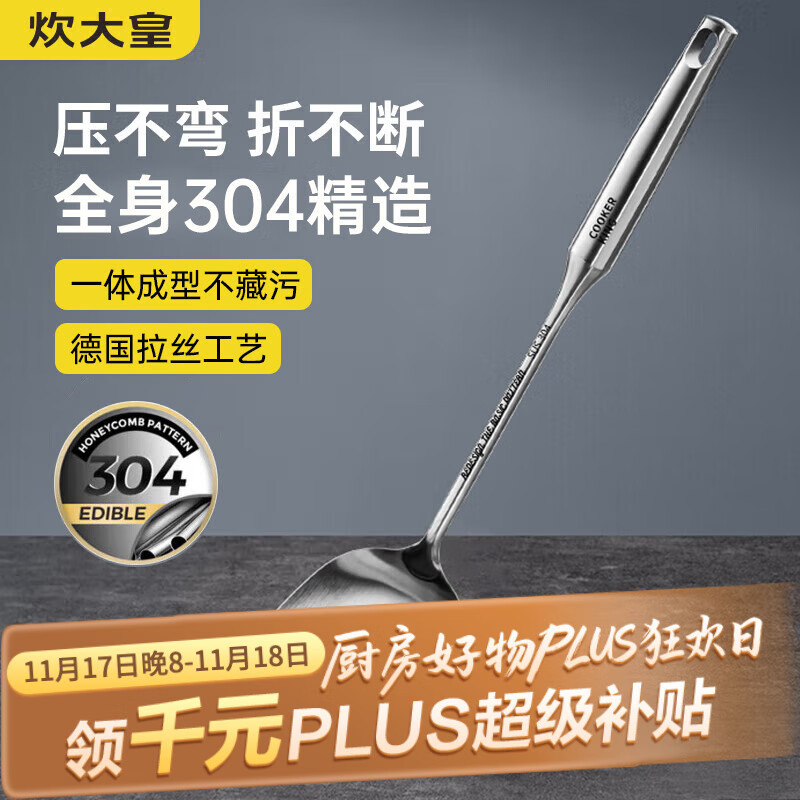 炊大皇 锅铲 304不锈钢铲子真空手柄家用炒菜铁锅不锈钢锅无涂层锅用