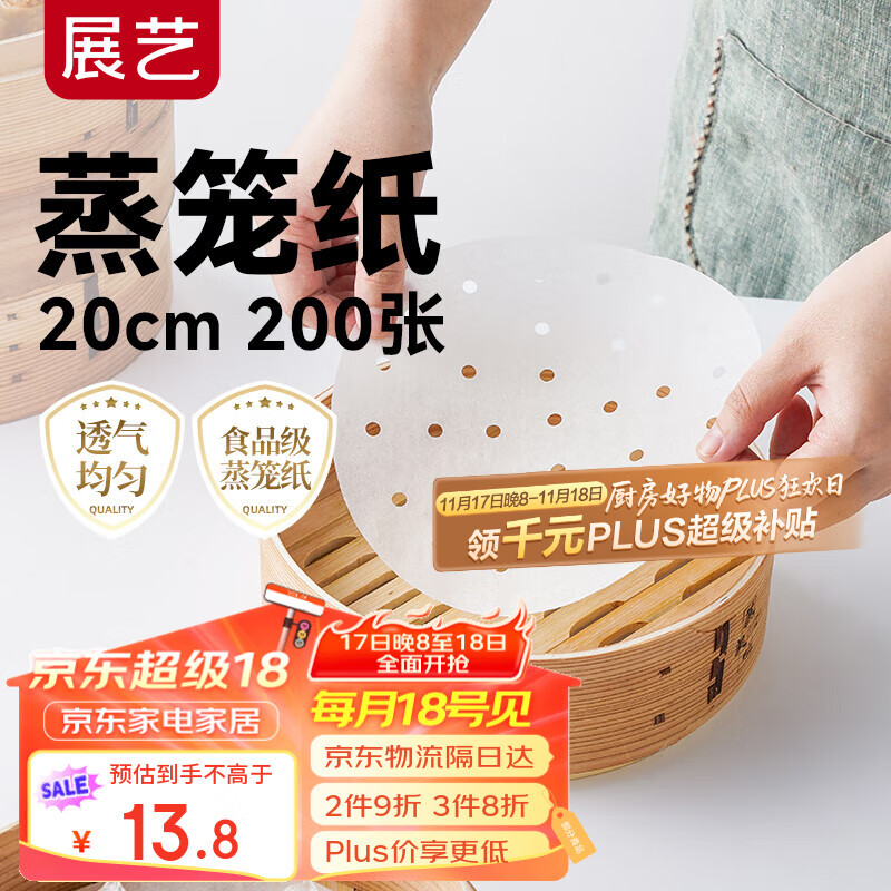展艺蒸笼纸20cm*200张一次性食品级圆形包子馒头粽子面点蒸屉不沾垫纸