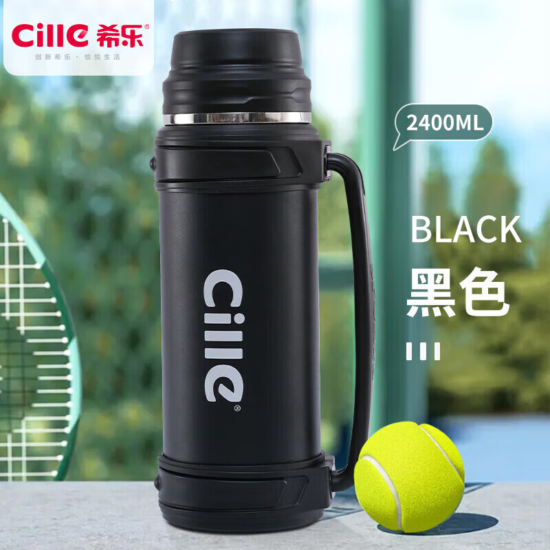 希乐大容量保温旅行壶304不锈钢热水壶车载真空户外保温水瓶黑色2.4L