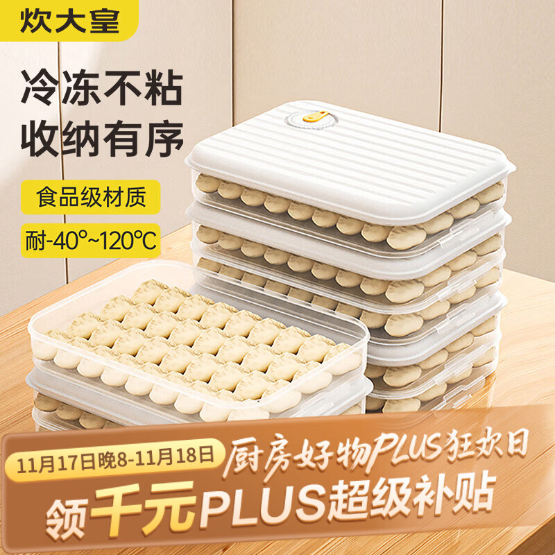 炊大皇 多功能饺子盒4层1盖加大收纳盒冰箱保鲜盒食品级冷冻水饺馄饨盒