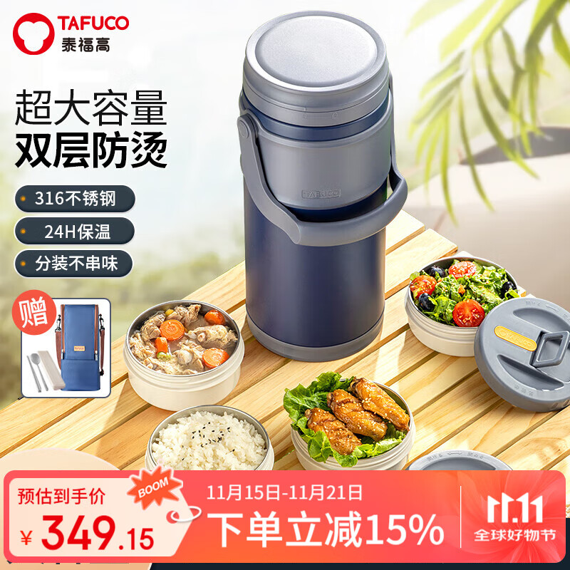 泰福高(TAFUCO)保温饭盒316不锈钢学生便携保温桶上班族大容量便当盒食品级T0290