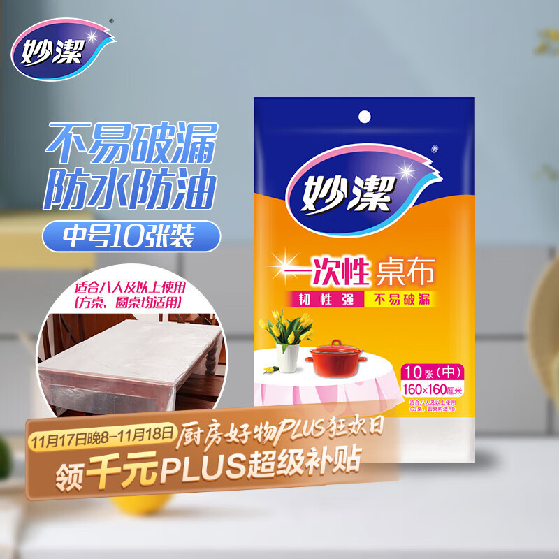 妙洁 一次性台布C型桌布 中号10张装 餐桌塑料膜餐垫野餐布红白随机发