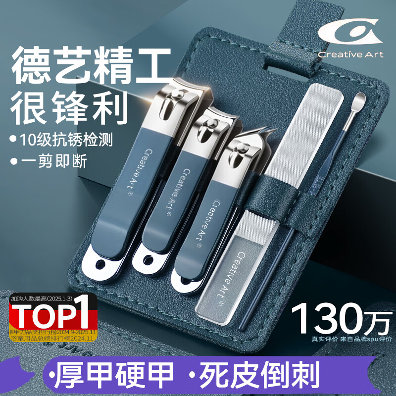 Creative art指甲刀套装全套德甲沟炎专用指甲刀剪钳国挖耳勺指甲锉平斜5件
