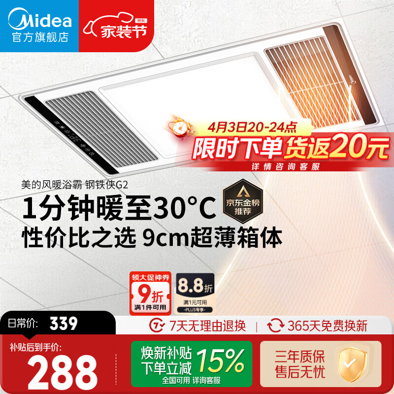美的(Midea)风暖浴霸钢铁侠系列暖风照明排气一体换气暖风机G2