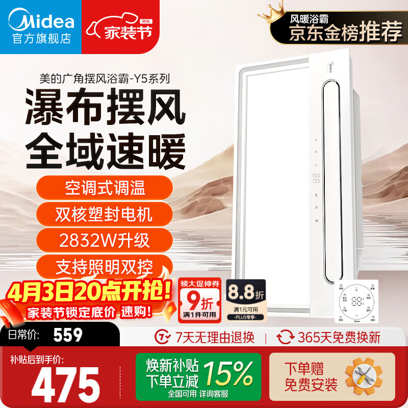美的(Midea)风暖浴霸云帆系列暖风照明排气一体广角摆风速暖Y5