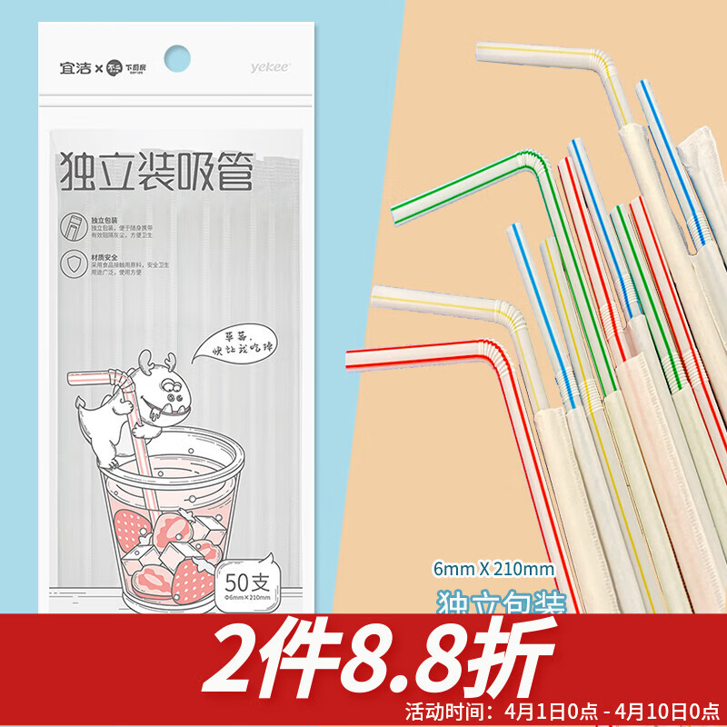 宜洁(yekee) 吸管一次性卫生独立包装吸管50只装Y-9912