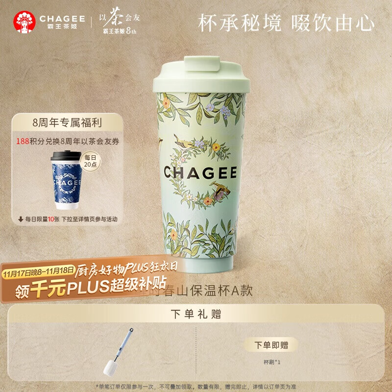 霸王茶姬(CHAGEE)保温杯316L食品级不锈钢京东自营水杯子咖啡杯茶杯水壶醒时春山
