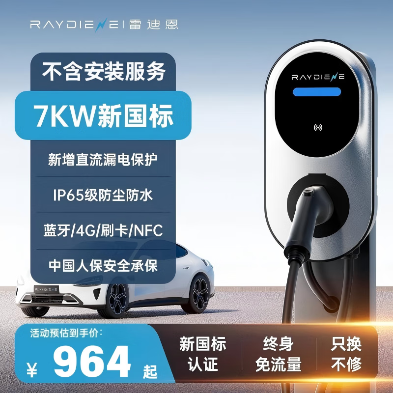 雷迪恩家用充电桩新能源7KW适配于特斯拉问界比亚迪小鹏小米 磐石7KW4G版
