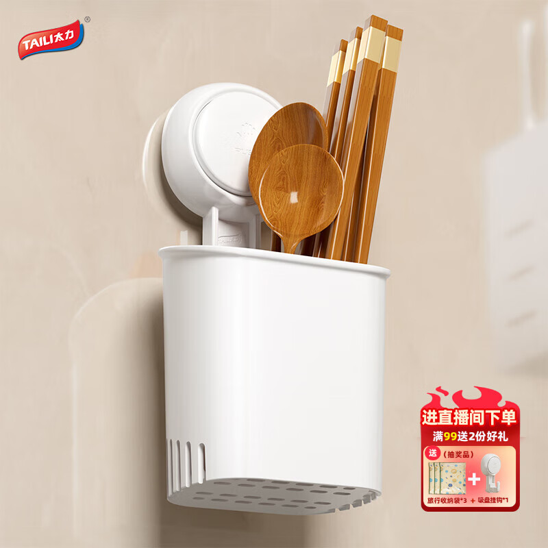 太力吸盘筷子收纳盒沥水筷子筒 厨房置物架筷笼吸盘壁挂1个装