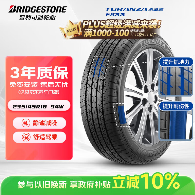 普利司通(Bridgestone)汽车轮胎 235/45R18 94W ER33 配套锐志/思铂睿/雅阁/适配皇冠