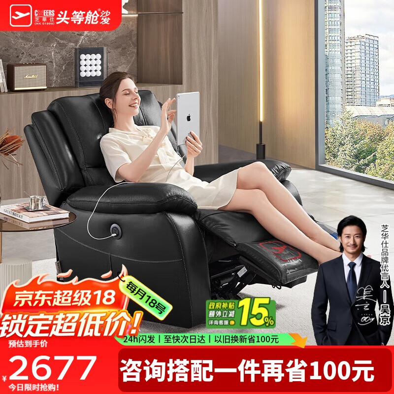 芝华仕(CHEERS)头等舱智能椅真皮沙发电动全明星实力单椅K135黑电【京仓闪发】