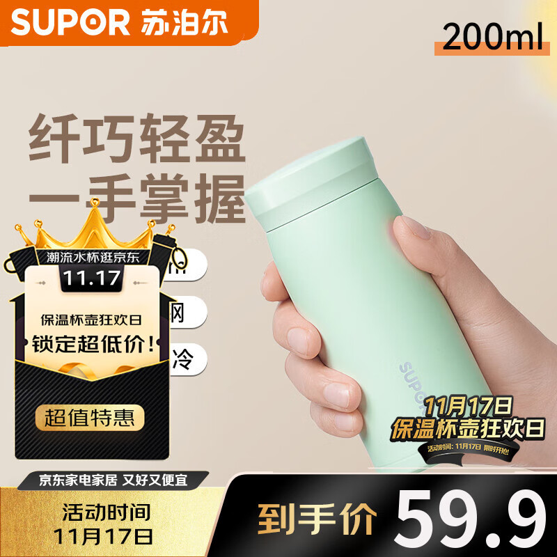 苏泊尔(SUPOR)保温杯316L不锈钢口袋杯中小学生男女士随身便携车载水杯