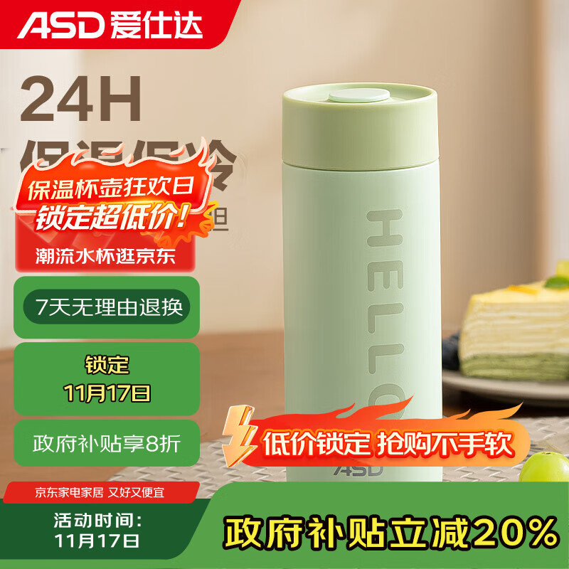 爱仕达(ASD)316L不锈钢真空保温杯 家用办公学生水杯 长效保温 400ml 薄荷绿