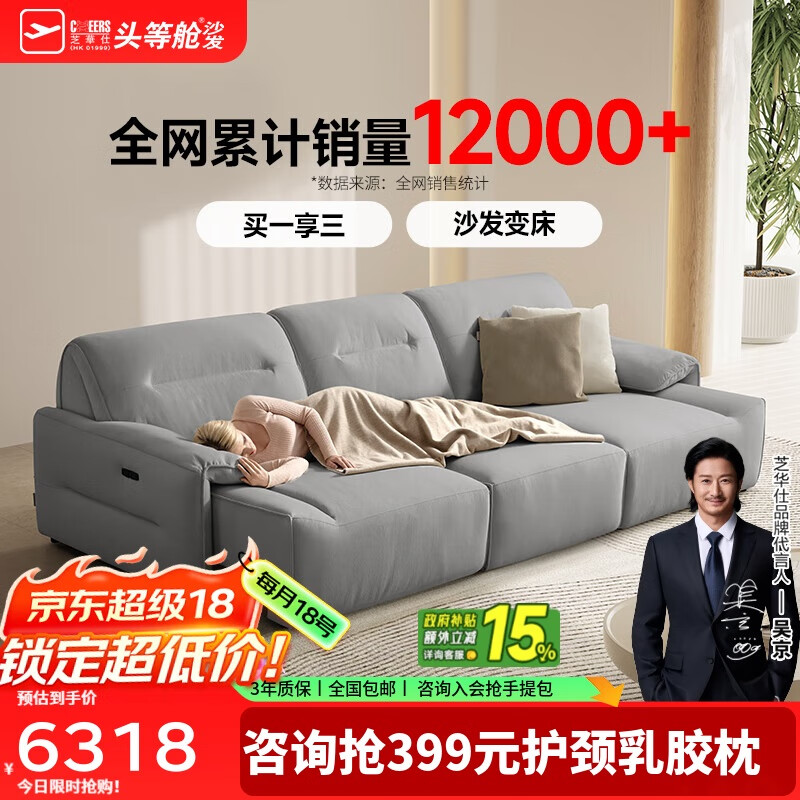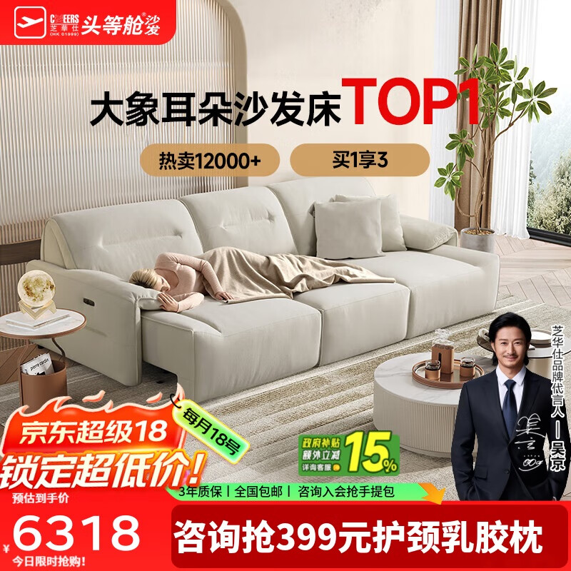 芝华仕(CHEERS)头等舱电动沙发床客厅科技布沙发床一体两用大象耳朵芝华士40272