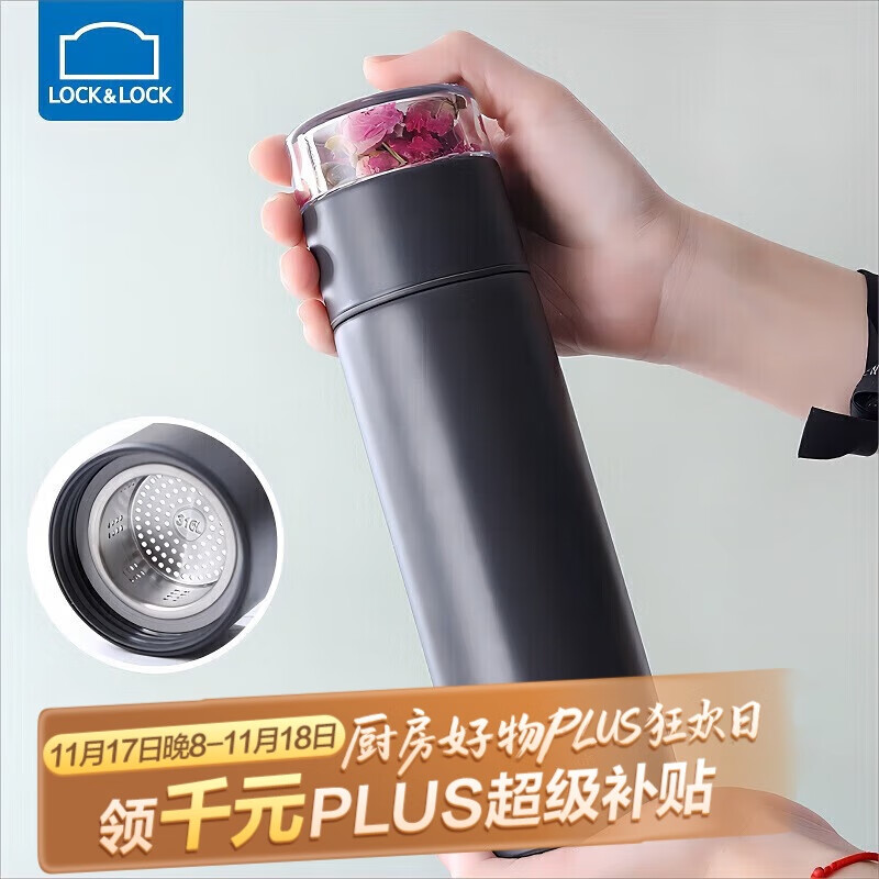 乐扣乐扣(LOCK&LOCK)品茗茶水分离不锈钢车载保温杯男女学生水杯400ML灰色LHC4233DGRY