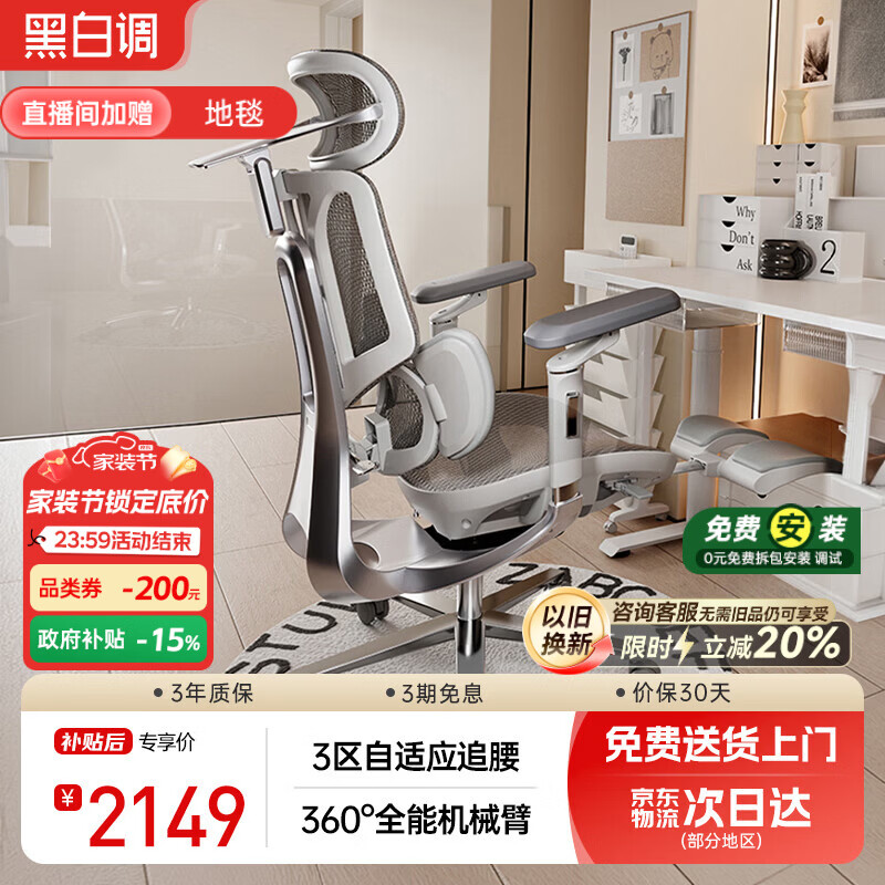 黑白调E3Pro人体工学椅电脑椅子办公电竞椅人工力学座椅麦肯基三区腰托