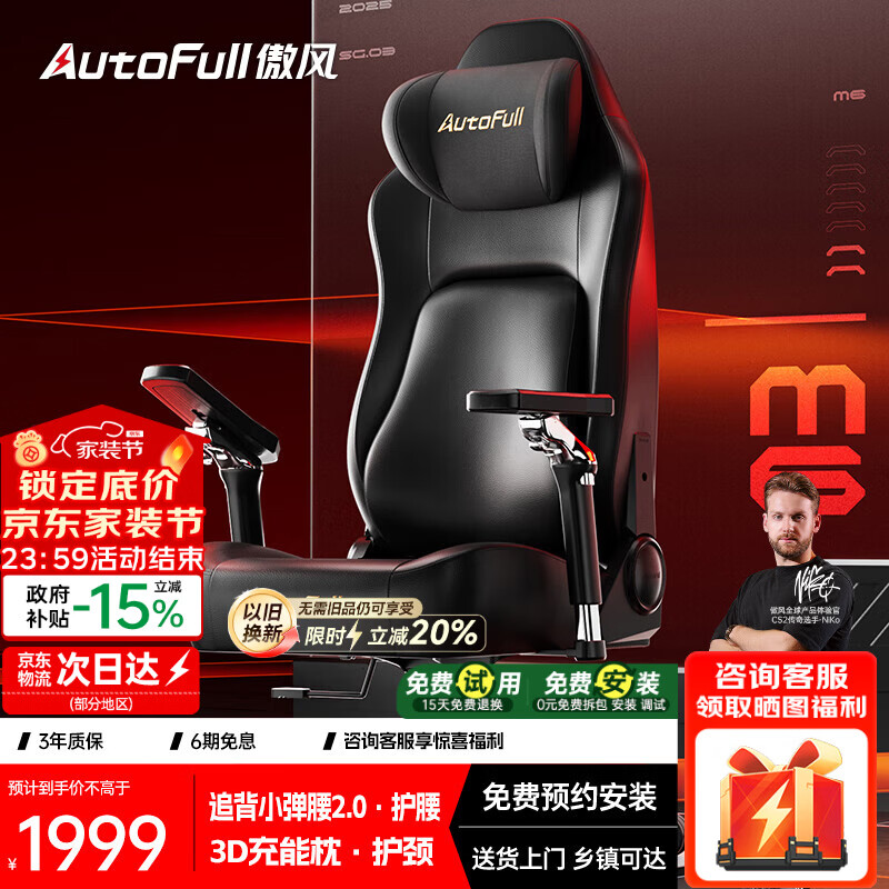傲风【Uzi推荐】M6电竞椅人体工学椅电脑椅人工力学椅游戏椅国家补贴