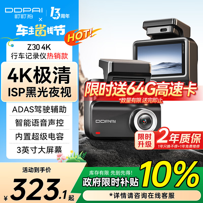 盯盯拍AI行车记录仪Z30 4K版 超清黑光夜视 5GWiFi蓝牙闪连 3英寸全彩屏