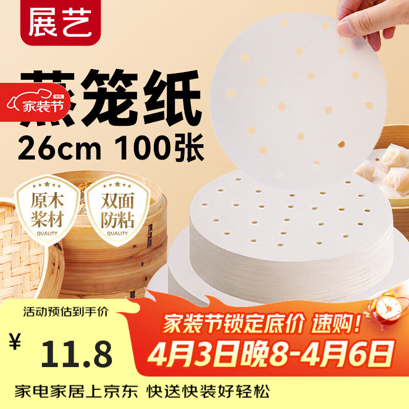 展艺蒸笼纸26cm*100张一次性食品级圆形包子馒头露营面点蒸屉不沾垫纸