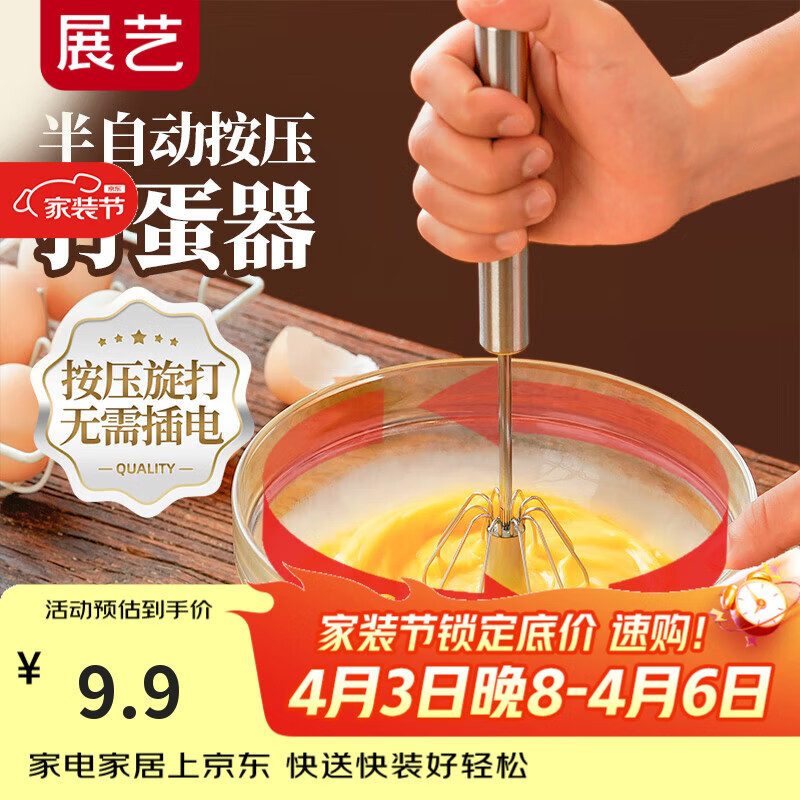 展艺手动半自动按压打蛋器辅食工具电饭煲蛋糕面包露营不锈钢搅蛋器