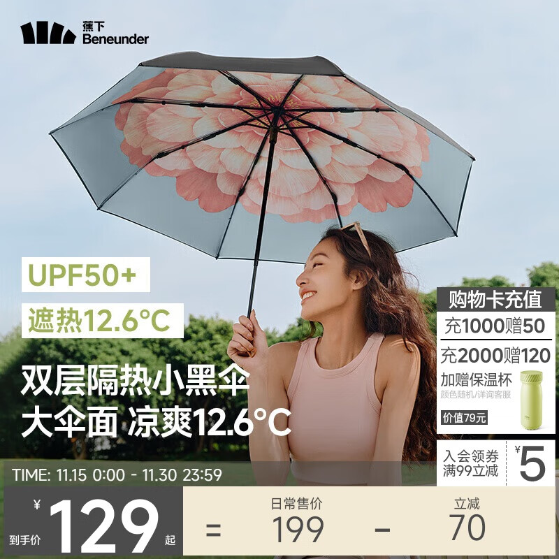 蕉下(beneunder)防紫外线遮阳伞三折双层黑胶晴雨伞防晒伞BM664花椿
