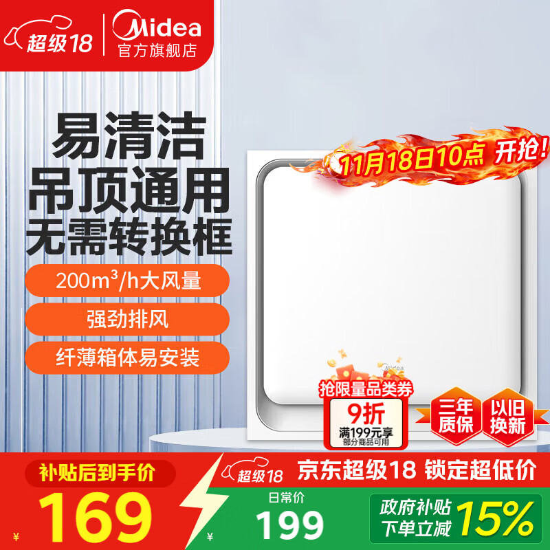 美的(Midea)【顶排】排气扇换气扇排风扇厨房卫生间集成吊顶铝扣板管道扇