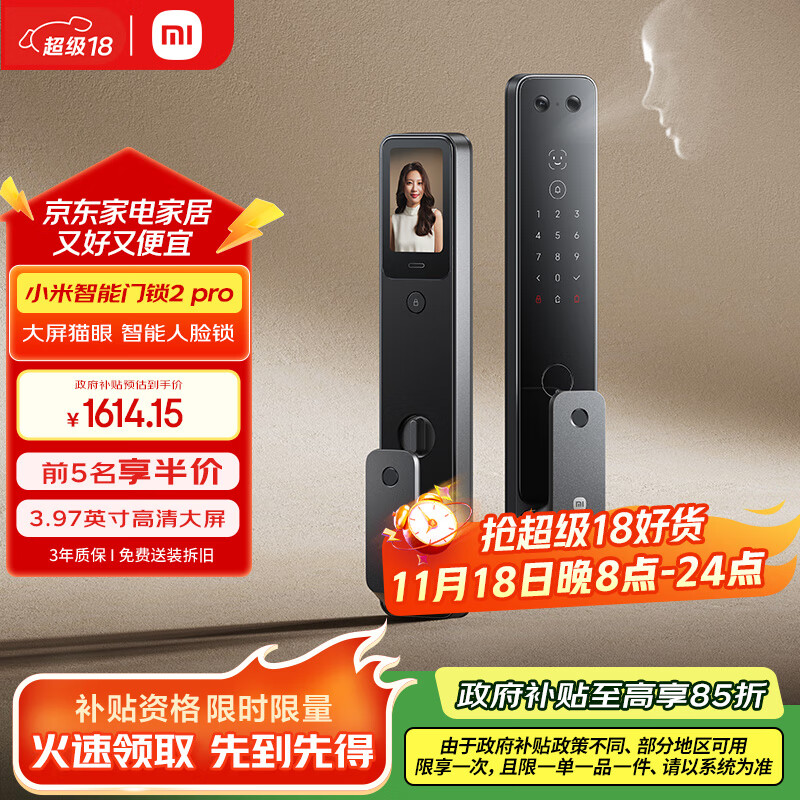 小米智能门锁2 Pro 3D人脸识别 可视猫眼大屏指纹锁电子锁密码锁